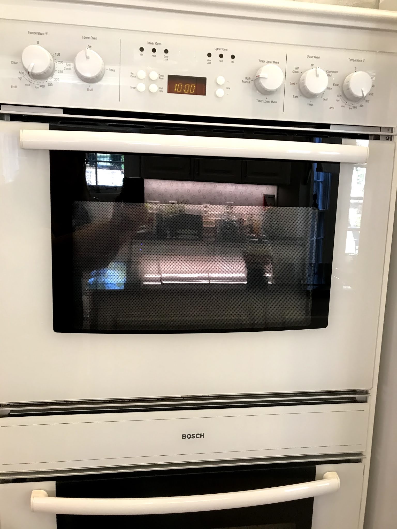 Trying to find the holes was tricky as the cotton moved and covered a couple of them. All in all, it' took about an hour and a half. Butch kept his cool. We were both surprised that considering it's a Bosch the insides seemed pretty cheap. Plus, who knew there were actually 4 pieces of glass in an oven door? We definitely learned a lot. We learned that we're never doing this again!